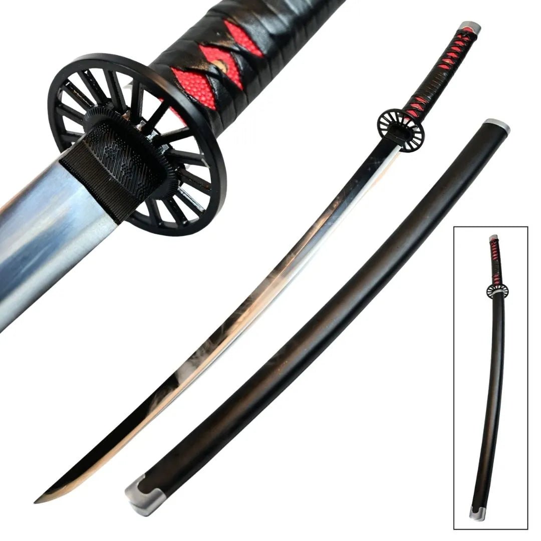 ✔️ Empuñadura con encordado negro y detalles en rojo – Diseño fiel al anime.