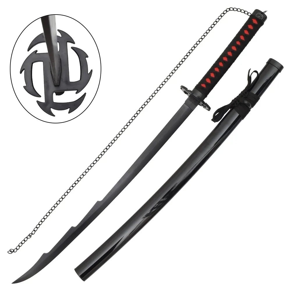 Inspirada en la imponente Tensa Zangetsu Evolution (Heaven Chain Slaying Moon), esta katana ornamental es una réplica no oficial del arma que empuña Kurosaki Ichigo en su forma final del Bankai durante la épica serie Bleach. Una pieza que captura la esencia oscura, estilizada y letal del protagonista, ideal para fans, coleccionistas y cosplayers.