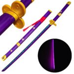 Esta katana no es una simple pieza de decoración. Es la representación fiel de la legendaria espada que Roronoa Zoro empuña en One Piece. Cada detalle está pensado para impresionar: hoja de bambú de alta calidad, acabados morados que evocan el poder del haki, y una iluminación LED que transforma cualquier espacio en un escenario épico.