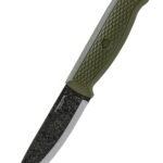 La hoja del Terrasaur está fabricada con acero de alto contenido de carbono 1095, lo que lo convierte en un cuchillo de alta calidad que puede soportar un uso intensivo y prolongado. El mango del cuchillo está hecho de polipropileno indestructible, lo que permite un agarre cómodo y seguro durante el uso. La funda de polipropileno incluida está diseñada para ser utilizada en ambos lados, asegurando que el cuchillo esté siempre al alcance de la mano.
