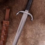 – Material del mango: Madera con cubierta de cuero, perilla y protector de acero