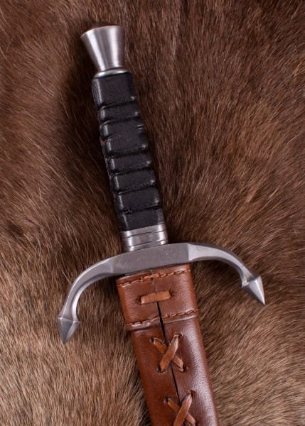 Con sus bordes de corte romos de aprox. 1,5 mm / 2 mm de grosor y su punta redondeada, esta daga a la izquierda es ideal para recreación, o peleas de espectáculos de luces o sparring. Por supuesto, también es ideal como artículo de coleccionista, objeto decorativo o atrezzo, e.B. para completar tu disfraz.