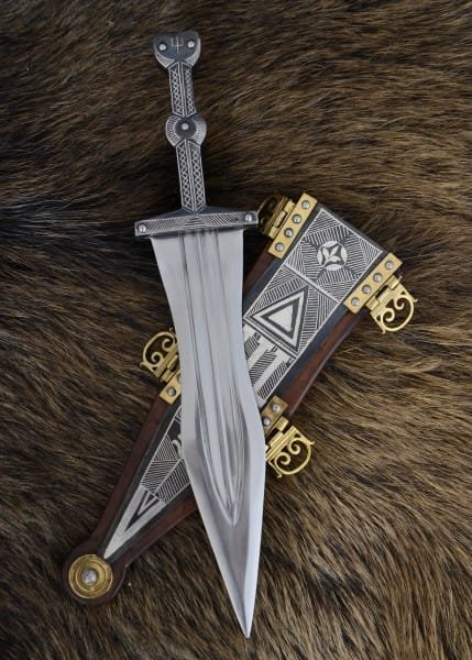 Una hermosa reconstrucción de una daga romana que fue diseñado muy artísticamente y con gran artesanía.