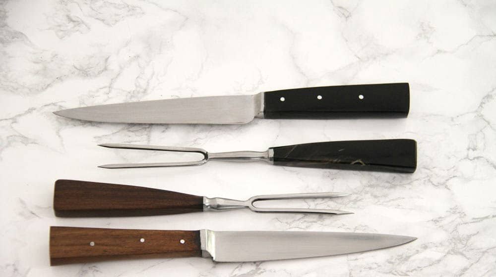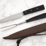 El cuchillo es un instrumento que se usa para cortar, consta de una delgada hoja metálica con uno o dos lados afilados y de un mango por el cual se sujeta. Se ha usado como herramienta y como arma desde la Edad de Piedra. Este cuchillo forjado artesanalmente, Junto con un tenedor (pincho)