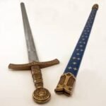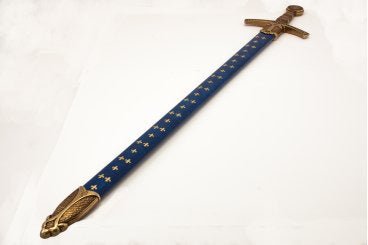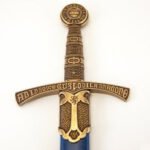 La guarda y el pomo de la espada están decorados con una inscripción en latín que se traduce en «custodiada por un dragón que no duerme, en nombre de la verdad». Esta inscripción da una sensación de fortaleza y seguridad, dando la impresión de que la espada está protegida por una fuerza mágica.