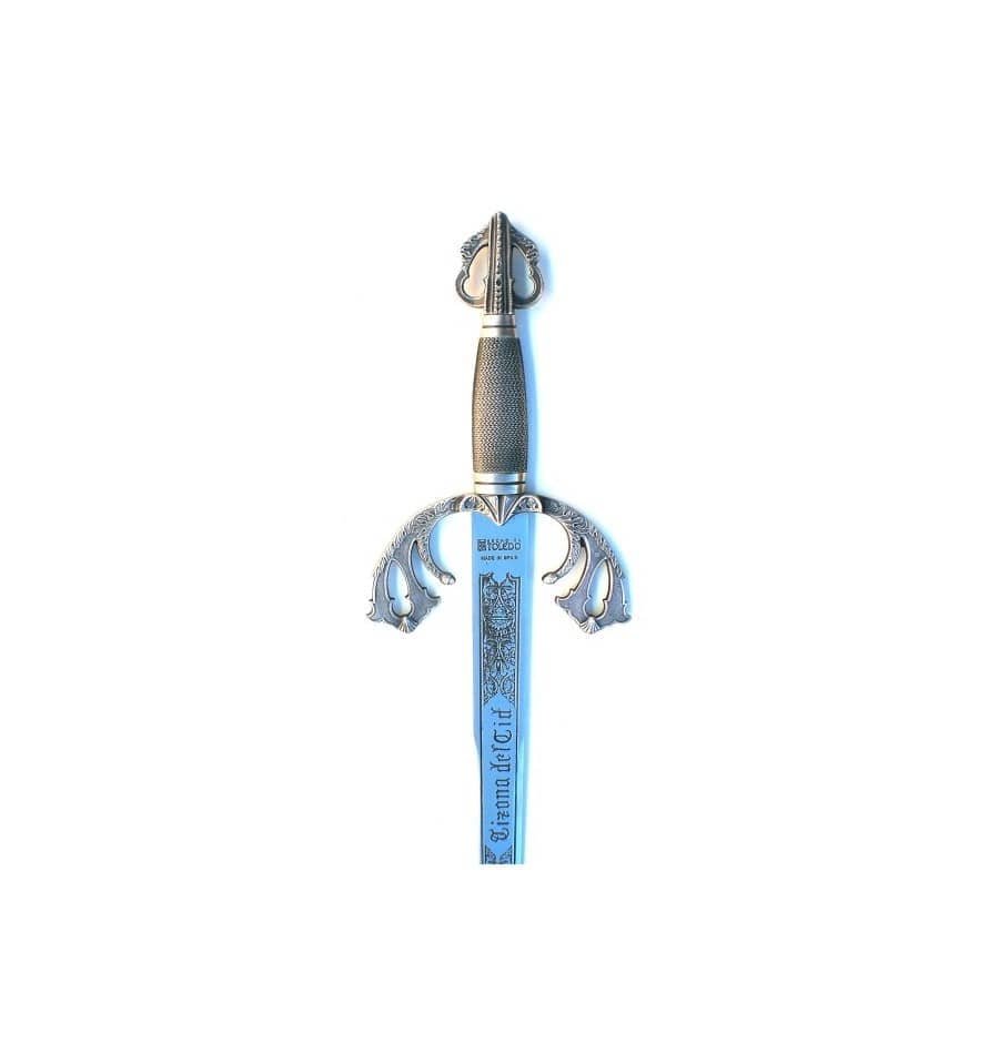 Esta espada Tizona del Cid es una verdadera obra de arte en acero inoxidable de alta calidad, fabricada por manos expertas en Toledo, España. El diseño fiel a la original espada usada por el famoso héroe español, el Cid Campeador, se puede apreciar en cada detalle, incluyendo la empuñadura y la hoja curvada.