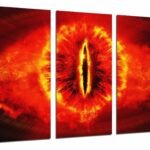 Este cuadro es una maravillosa adición a cualquier habitación en la que quieras crear una atmósfera fantástica y épica. Su imponente tamaño y apariencia hacen que sea el centro de atención de la habitación y un tema de conversación seguro. El contraste del color naranja brillante del ojo en medio de los tonos oscuros del fondo crea un efecto dramático que atrae la atención del observador y le transporta al mundo de la Tierra Media.