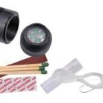 La funda está equipada con un paracord de emergencia adicional, tirachinas de goma, desollador de acero profesional, espejo y regla.