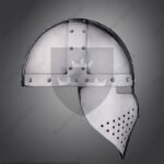 Pieza imprescindible para el recreador de finales del siglo XII al siglo XIII. Pieza de uso extendido en la época debido a la protección extra que proporcionaba el facial en contraposición a los capacetes que sólo protegían la cabeza.