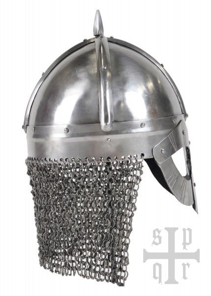 ¡Un spangenhelm medieval temprano que hará que tu transformación en un orgulloso guerrero nórdico sea simplemente perfecta! Por supuesto, este casco también es una excelente adición decorativa al tesoro de todo coleccionista de cascos.