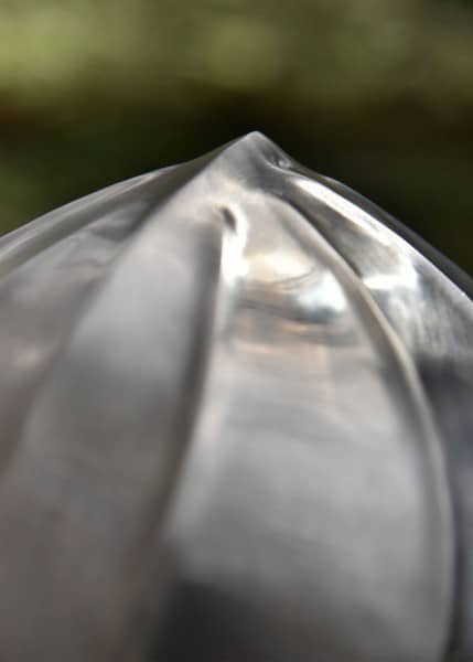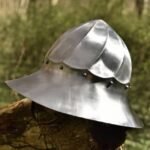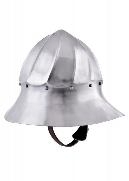 de 1,6 mm Este timón medieval tardío es una reproducción de un sombrero detetera borgoñón de finales del siglo 15 sombrero de guerra, modelado a partir de artefactos originales (uno de los cuales se encuentra en el Museo Metropolitano de Arte de Nueva York). Su atractivo particular radica en su diseño simple pero atractivo y su cuenco estriado que lo hace destacar entre la multitud.