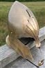 Similar al popular casco Barbuta, esta armadura de alta fantasía se asegura apretando la correa de cuero debajo de la barbilla, manteniendo el casco en su lugar. Hecho de acero dulce de 1 mm de espesor y correas y accesorios de cuero de grano superior, esta pieza de armadura está acabada con un revestimiento de latón que le da un aspecto particularmente majestuoso. Con el cuidado habitual de la armadura de cuero y metal, durará muchas temporadas.