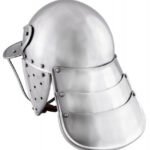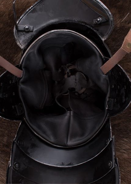 Esta réplica del Zischá¤gge es una variante llamada olla de tres barras , que tiene tres varillas soldadas en sus extremos en la visera. La cola de langosta consta de tres platos remachados. Hay una incrustación de cuero práctica y ajustable en tamaño en el casco.