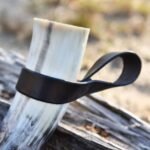 El lazo superior está unido al cinturón y en el lazo inferior se inserta el cuerno o una espada. La superficie y los bordes del cuero están pulidos y provistos de un ligero acabado de color, lo que le da al cuero su aspecto usado característico.