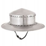 Incluye una incrustación de tela remachable, de alta calidad y ajustable con correa para la barbilla y hebilla de latón.