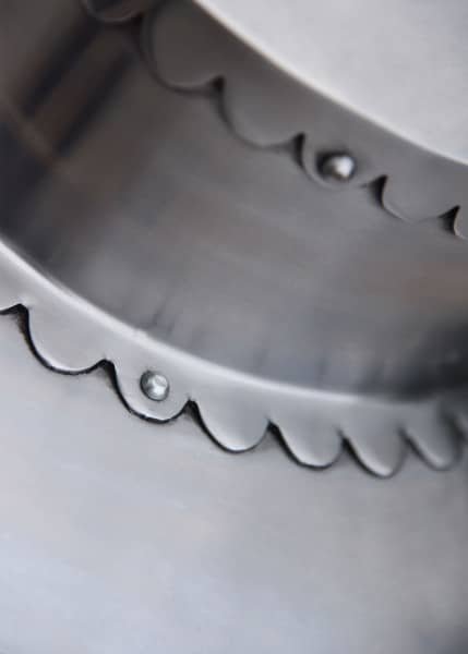 El casco está hecho de chapa de acero de 2 mm de espesor a mano e impresiona con su forma simple pero hermosa y con el medio redondeado en los extremos de la tapa .