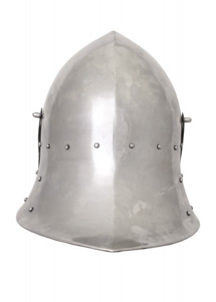 Como todos los Schaller con visera, esta forma era principalmente de caballeros y mercenarios, los ingleses. El casco tiene un sofisticado candado para cerrar la visera. El casco tiene una incrustación de tela acolchada muy cómoda y una barbilla sólida con hebilla.