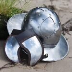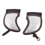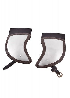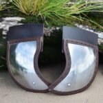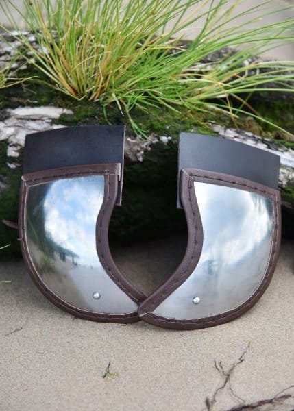 Este par de colgajos separados de Ulfberth hace posible la adaptación de casi cualquier casco con este protector facial. Se proporcionan en el reverso con piel de vaca, lo que evita el contacto con el acero frío, posiblemente de bordes afilados. En la parte superior de una tira de cuero ancha y muy gruesa se cose, el otro extremo se puede unir con un poco de habilidad manual a su casco. Además, las correas para la barbilla y la hebilla de latón están remachadas.